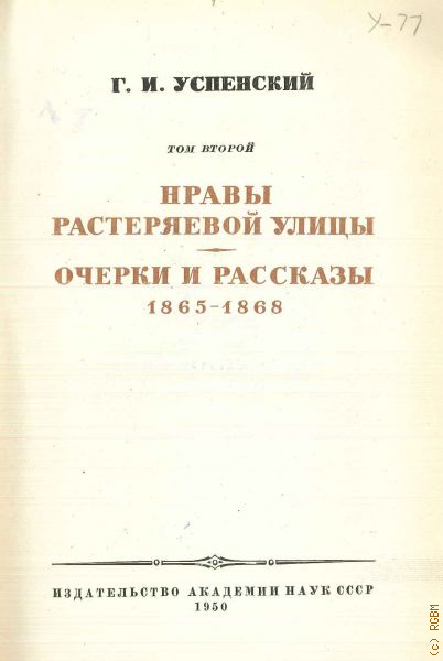 Успенский Г.И., Нравы Растеряевой улицы. Очерки и рассказы. 1865-1868. Полное собрание сочинений Т. 2 — 1952