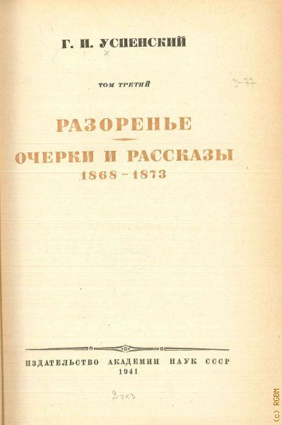 Успенский Г.И., Разоренье. Очерки и рассказы. 1868-1873. Полное собрание сочинений Т. 3 — 1941