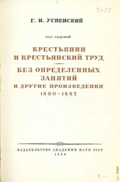 Успенский Г.И., Крестьянин и крестьянский труд. Без определенных занятий и другие произведения. 1880-1882. Полное собрание сочинений Т. 7 — 1950