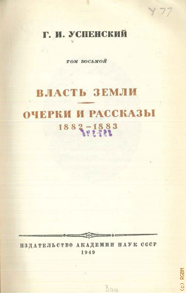 Успенский Г.И., Власть земли. Очерки и рассказы. 1882-1883. Полное собрание сочинений Т. 8 — 1949