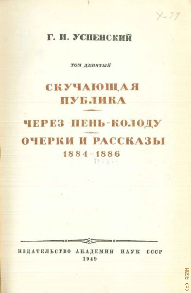 Успенский Г.И., Скучающая публика. Через пень-колоду. Очерки и рассказы. 1884-1886. Полное собрание сочинений Т. 9 — 1949