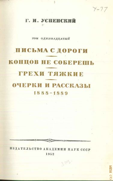 Успенский Г.И., Письма с дороги. Концов не соберешь. Грехи тяжкие. Очерки и рассказы. 1888-1889. Полное собрание сочинений Т. 11 — 1952