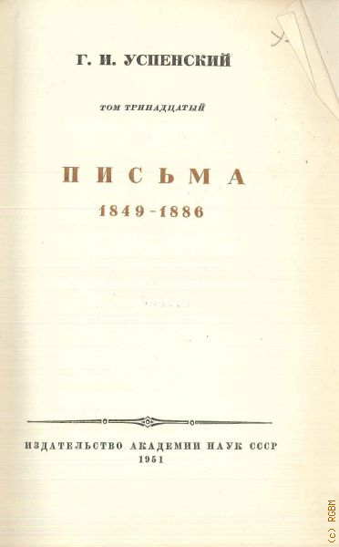 Успенский Г.И., Письма. 1849-1886. Полное собрание сочинений Т. 13 — 1951