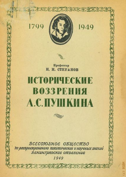Степанов Н.Н., Исторические воззрения А. С. Пушкина. Стенограмма публичной лекции, прочит. в 1949 году в Ленинграде — 1949 (К 150-летию со дня рождения А. С. Пушкина. 1799-1949. Всесоюз. о-во по распространению полит. и науч. знаний. Ленингр. отд-ние)