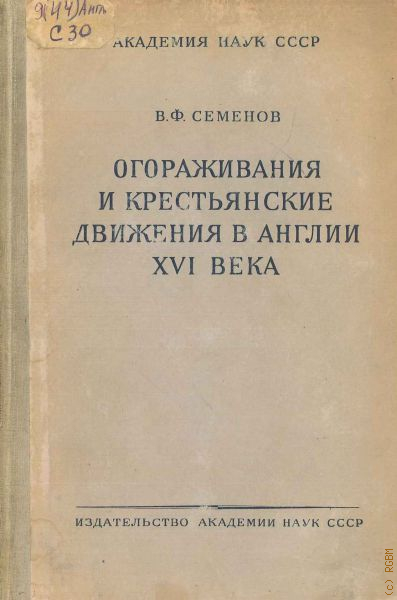 Семенов В.Ф., Огораживания и крестьянские движения в Англии XVI века. Из истории обезземеления крестьян в Англии — 1949
