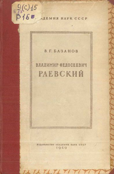 Базанов В.Г., Владимир Федосеевич Раевский. [1795-1872]. Новые материалы — 1949