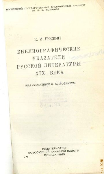 Рыскин Е.И., Библиографические указатели русской литературы XIX века — 1949