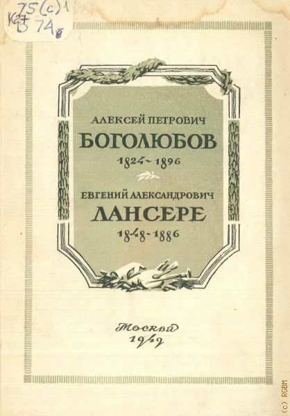 Каталог выставки картин и этюдов Алексея Петровича Боголюбова (1824-1896), 125 лет со дня рождения и скульптуры Евгения Александровича Лансере (1848-1886), 100 лет со дня рождения / Оргкомитет Союза советских худож. СССР [и др.] ; [сост. И. В. Власовым] — 1949