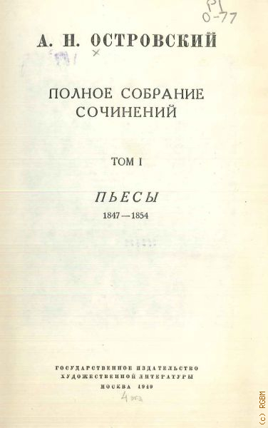 Островский А. Н., Пьесы. 1847-1854. Полное собрание сочинений Т. 1 — 1949