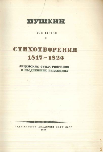 Пушкин А.С., Стихотворения 1817-1825. Лицейские стихотворения в позднейших редакциях. Полное собрание сочинений Т. 2 (2) — 1949