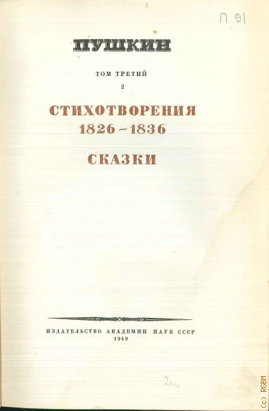 Пушкин А.С., Стихотворения. 1826-1836. Сказки. Полное собрание сочинений Т. 3 (2) — 1949