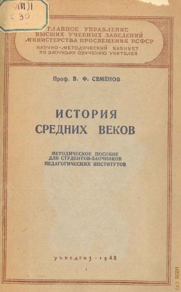 Семенов В.Ф., История средних веков. Метод. пособие для студентов-заочников пед. ин-тов : Ист. фак. — 1948