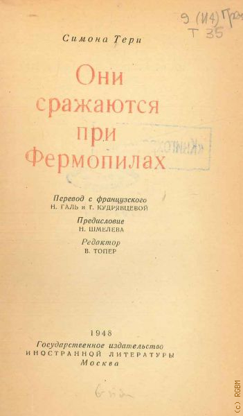 ![Тери С., Они сражаются при Фермопилах. [Борьба греческого народа за свою независмость] — 1948](/searchcat/covers/RGUB-BIBL-0000889380.jpg) |