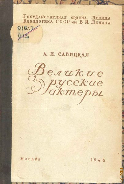 Савицкая А.И., Великие русские актеры и выдающиеся мастера русской драматической сцены. рекомендательный указатель литературы — 1948