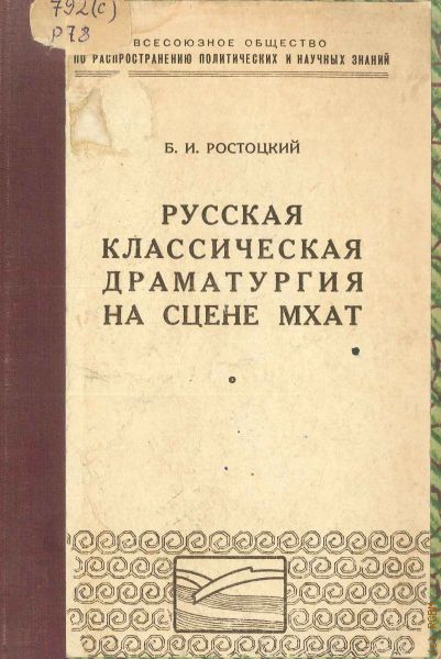 Ростоцкий Б.И., Русская классическая драматургия на сцене МХАТ. Стенограмма публичной лекции, прочит. в Центр. лектории О-ва в Москве — 1948