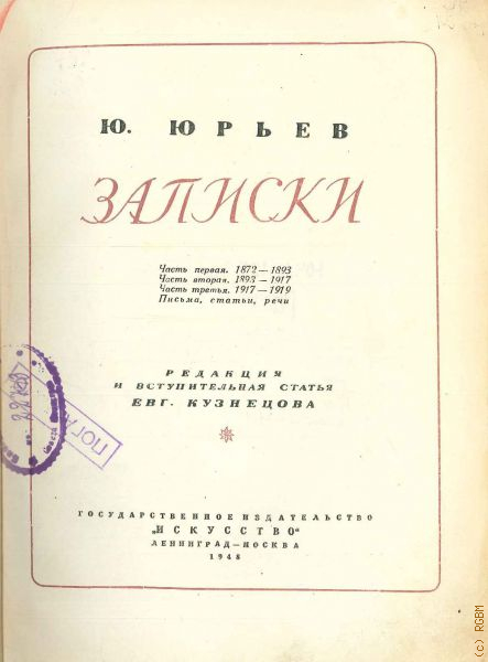 Юрьев Ю.М., Записки. [народного артиста СССР]. 1872-1948 — 1948