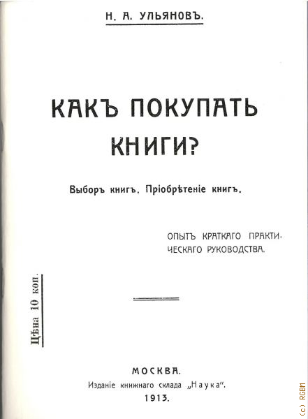 Ульяновъ Н.А., Как покупать книги? Выборъ книгъ. Прiобретенiе книгъ. опытъ краткаго практического руководства — 1973