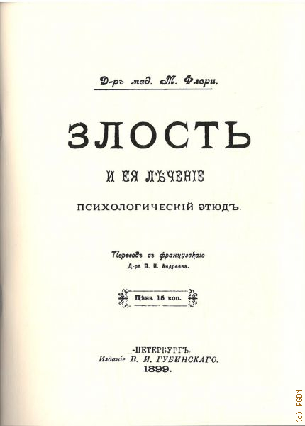 Флери М., Злость и ея лъченiе. психологическiй этюдъ — 1899