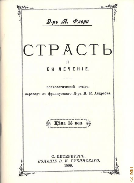 Флери М., Страсть и ея лъченiе. психологическiй этюдъ — 1899
