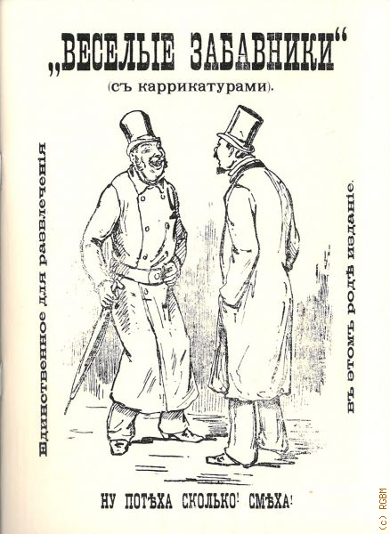 ![Дружинин Е.К., Веселые забавники с каррикатурами. Новейш. ил. юморист. сб. рассказов, сценок, анекдотов, афоризмов, каламбуров, стихотворений и пр. — 1902 ([Единств. для развлечения в этом роде изд.])](/searchcat/covers/RGUB-BIBL-0000934909.jpg) |