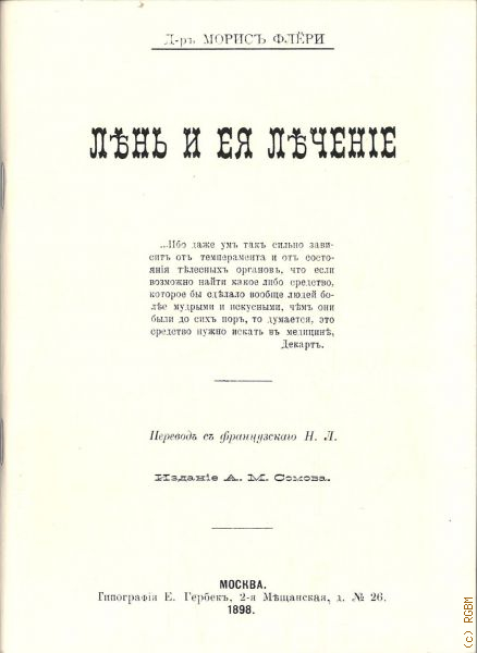 Флёри М., Лень и ея леченiе. издание А.М.Сомова — 1898