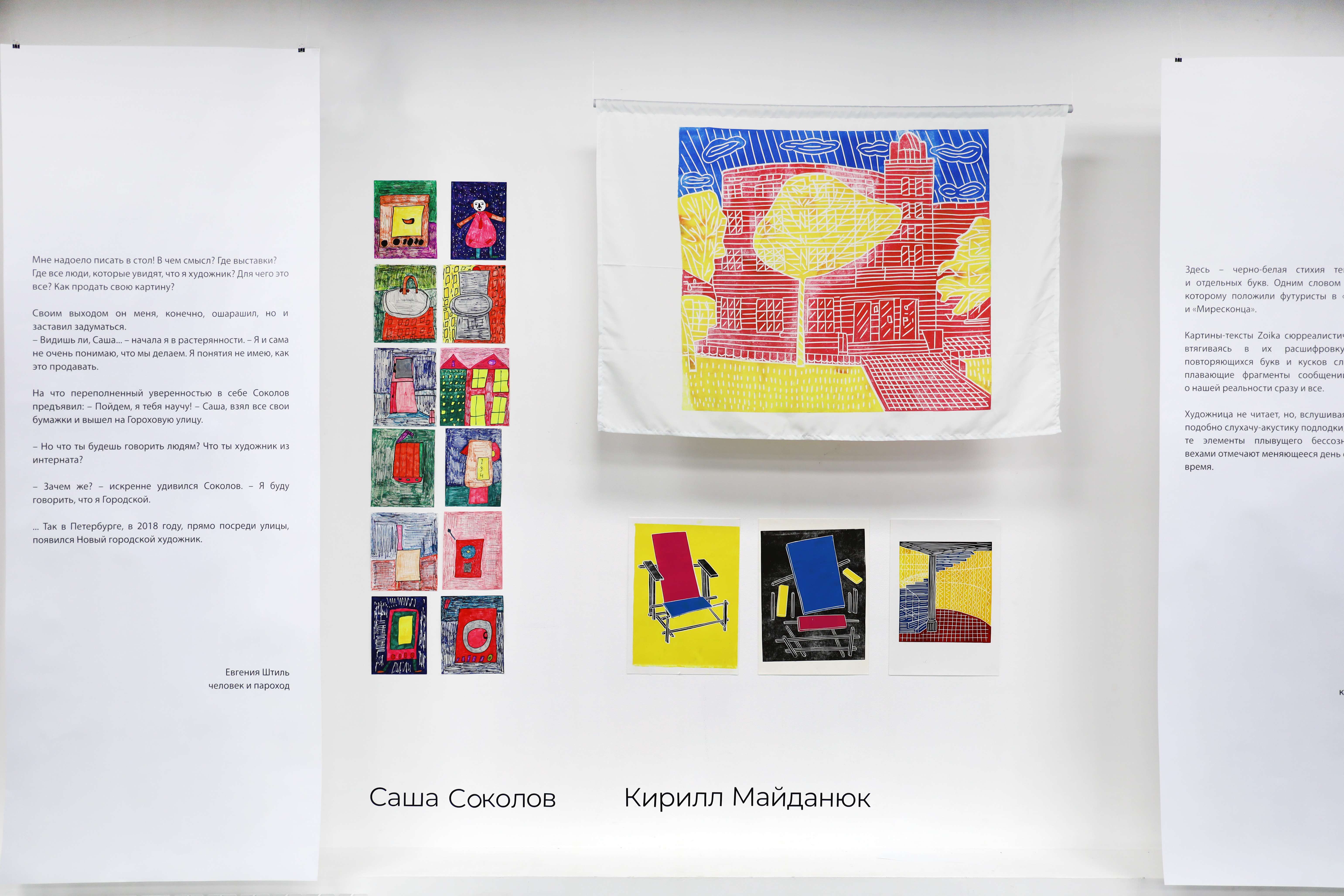 Проект выходит за рамки книжного формата: графика и фрагменты текстов становятся частью выставочного пространства. Они дополняют друг друга, создавая яркий и насыщенный опыт. Зритель буквально «общается» с творческим миром художников, многие из которых не могут не только приехать в Москву, но даже покинуть интернат.