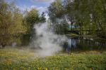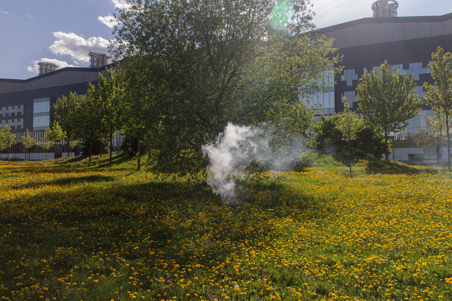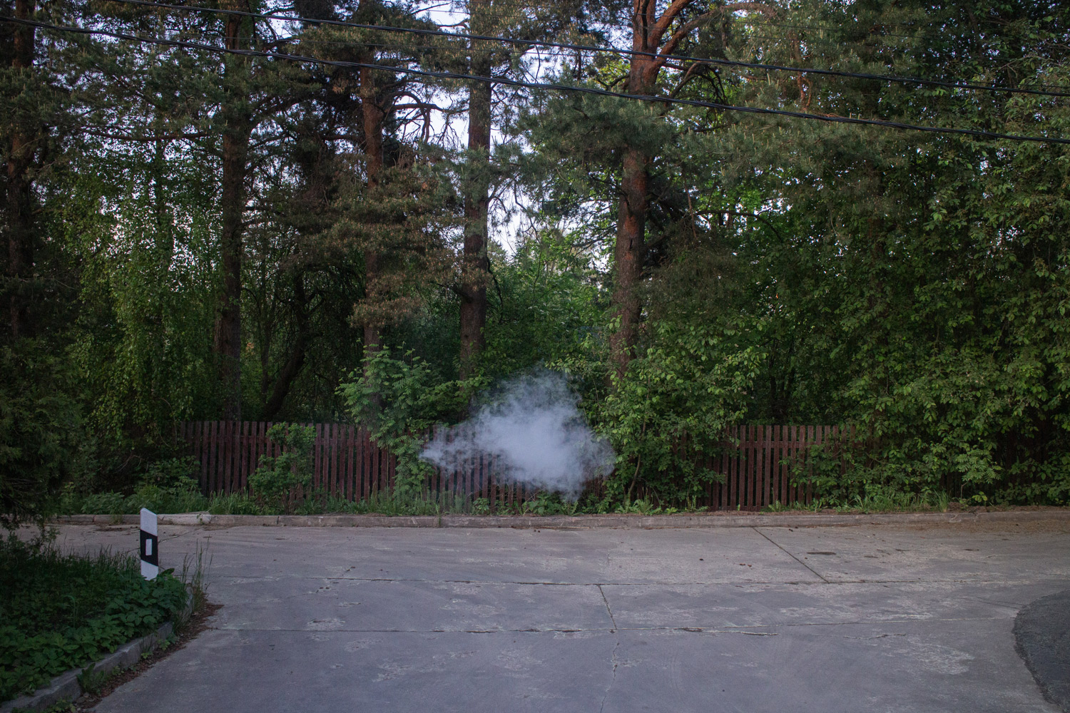 Облако в кадре можно прочитать буквально — как комиксовый «бабл» с текстом, — и метафорически: как сгусток напряжения, зависший в воздухе, знак того, что вот-вот исчезнет. Фотография фиксирует это мгновение перехода — момент, когда исчезновение уже началось, но ещё не завершилось.