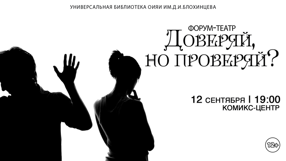 12 сентября в 19:00 приглашаем вас в Комикс-центр на необычное представление форум-театр «Доверяй, но проверяй?». Это интерактивный спектакль, в котором любой зритель может изменить развитие сюжета.