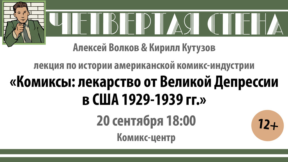 20 сентября в 18:00 в зале Комикс-центра состоится первая встреча нового клуба «Четвёртая стена», посвящённого истории американского комикса. Ведущий Алексей Волков, основатель и администратор сообщества Old Komix.