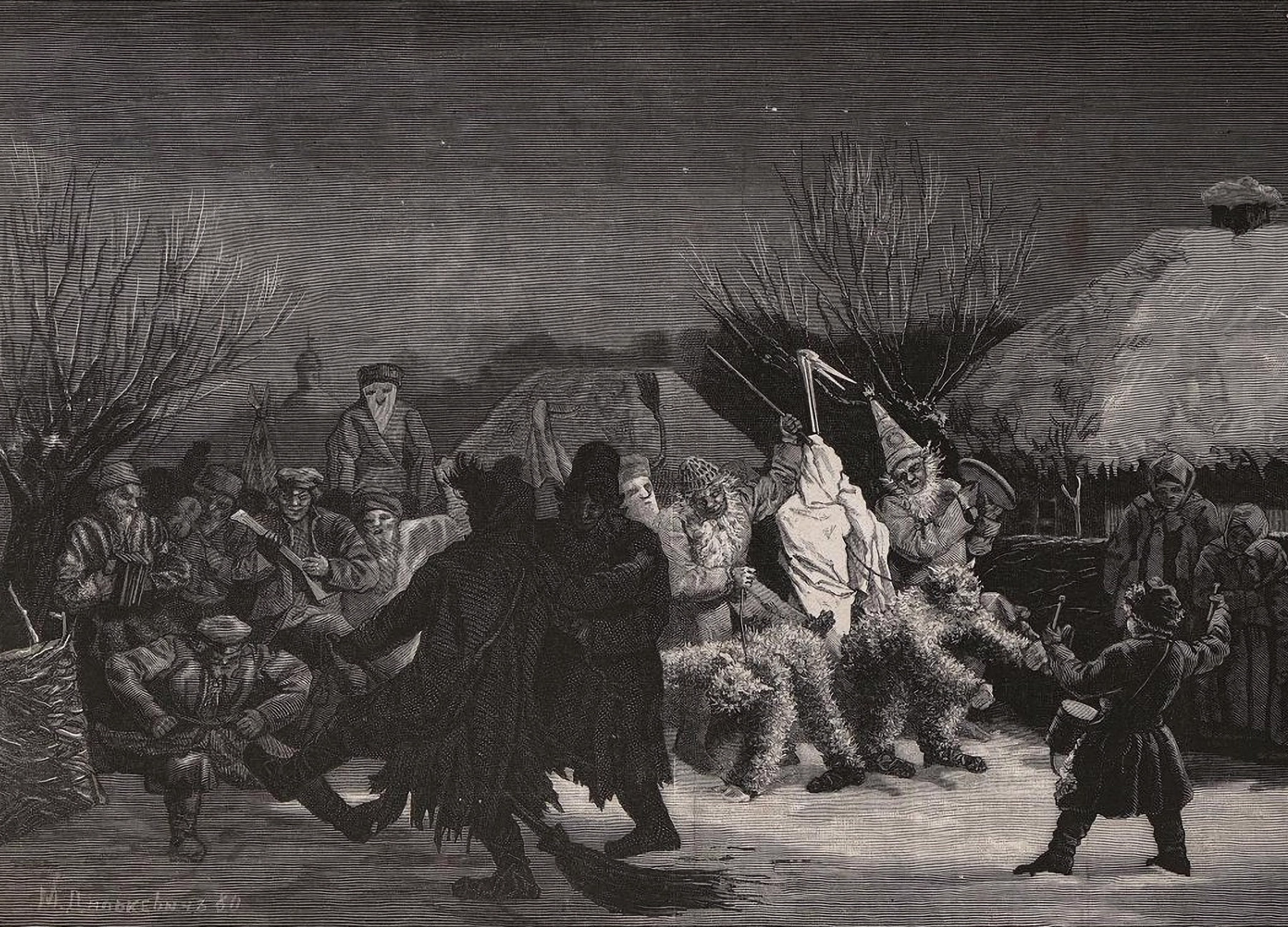 Святки — время от Рождества до Крещения — в русской традиционной культуре были особым, «лиминальным» временем, когда граница между миром живых и потусторонним истончалась и почти исчезала. В эти вечера улицы сёл и деревень на Нижней Каме наполнялись колядующими детьми, поющими тауси, и ряжеными, прячущими свой истинный облик под шкурой медведя или безликой маской.