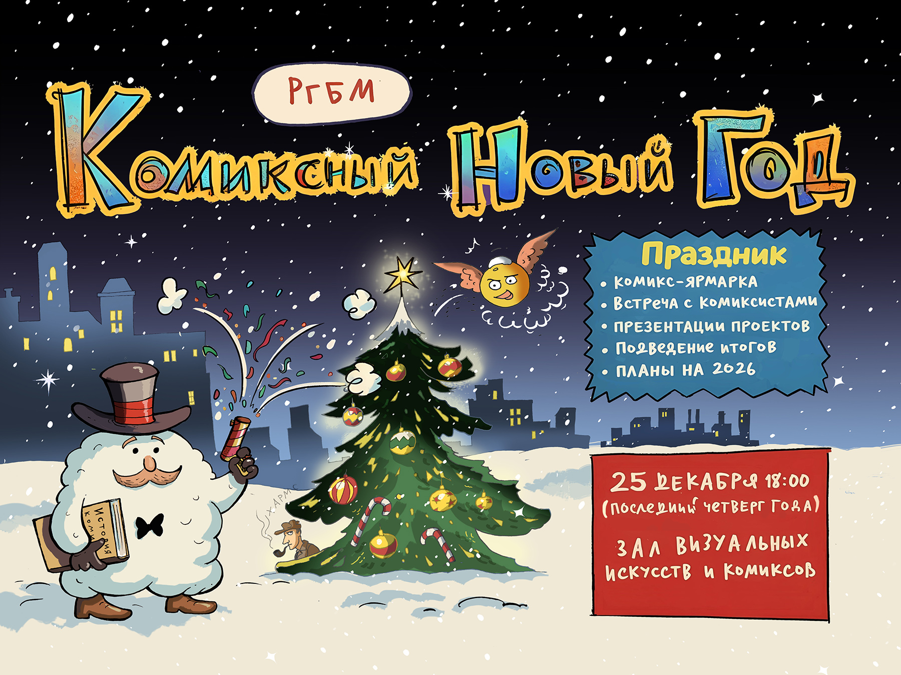 Этот вечер станет идеальным стартом праздников для всех, кто верит в магию визуальных историй. Ждём всех любителей комиксов — от мала до велика, чтобы вместе проводить старый год и загадать желания на новый!