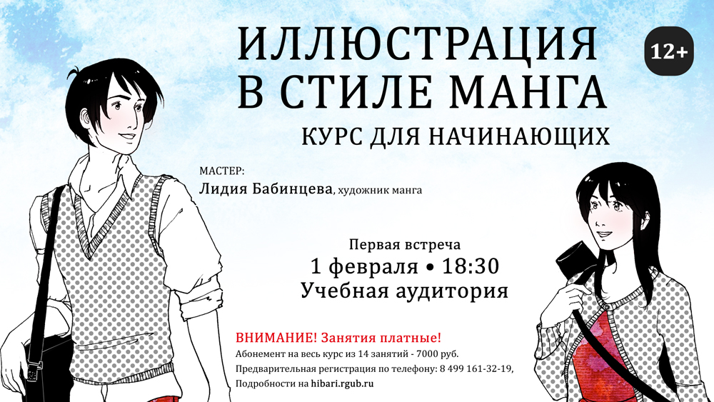 Предварительная регистрация по телефону 8 499 161-32-19 или электропочте kultprosvet@rgub.ru c темой письма «Иллюстрация манга»