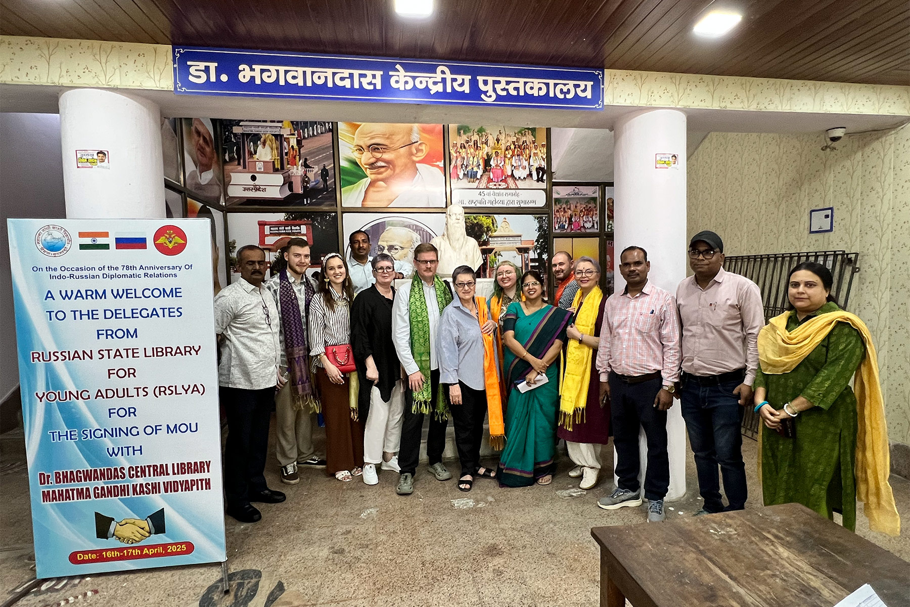В древнем городе Варанаси, история которого насчитывает более пяти тысяч лет, одном из древнейших центров образования в Индии, специалисты РГБМ провели профессиональные встречи с руководителями, библиотекарями, преподавателями и студентами-русистами, в Университете Банарас Хинду и Университете Махатмы Ганди Каши Видьяпит, познакомились с библиотеками университетов и выступили с лекциями о лучших российских практиках информационно-библиотечного обслуживания молодых пользователей. По итогу встреч был подписан Меморандум о сотрудничестве РГБМ с Университетом Махатмы Ганди Каши Видьяпит, а также достигнута предварительная договорённость о подписании такого документа с Университетом Банарас Хинду.