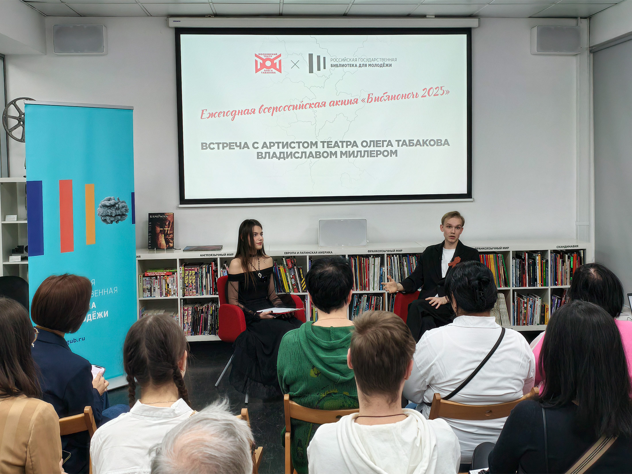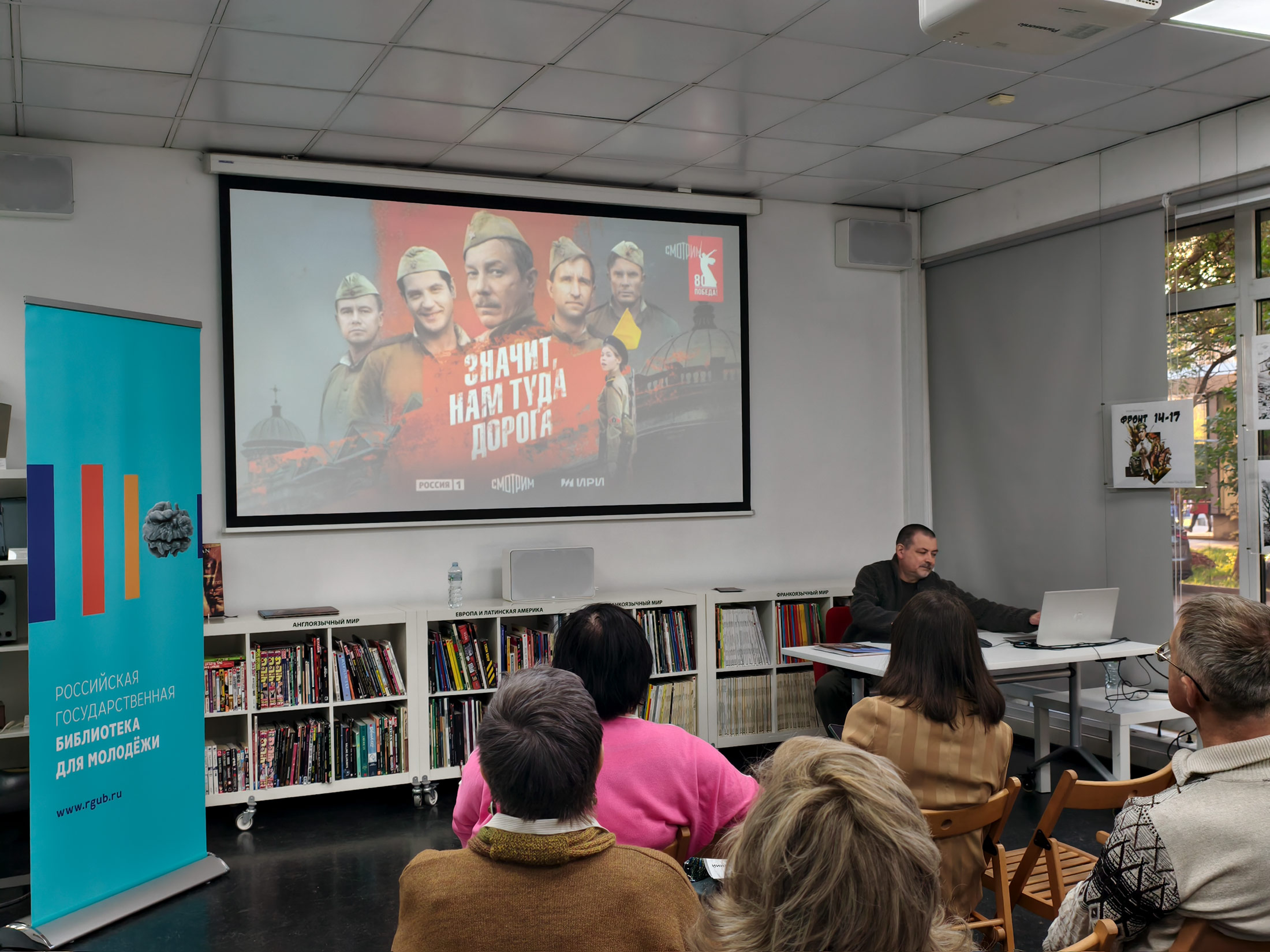 26 апреля в Российской государственной библиотеке для молодёжи прошла Всероссийская просветительская акция «Библионочь-2025». В специальной программе «80 мгновений весны», которую представила читателям Библиотека для молодёжи, в единый пазл были собраны знания, мысли и представления современников о страшной войне и прекрасной Победе. Участникам представилась уникальная возможность увидеть героев Великой Отечественной войны сквозь призму разных видов искусства: через объектив кинокамеры, между строк литературных произведений, в красоте мелодий и на холсте художников.