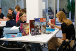 Библионочь в РГБМ порадовала и любителей комиксов: на творческой встрече руководитель комикс-центра РГБМ Денис Лопатников поделился секретами создания рисованных историй о московском народном ополчении, а комиксист Владимир Сахнов рассказал, в чём особенность исторических графических новелл. После встречи все желающие смогли придумать и нарисовать новых персонажей для рассказа о московских ополченцах под кураторством Алима Велитова, руководителя курса по созданию комиксов в РГБМ.