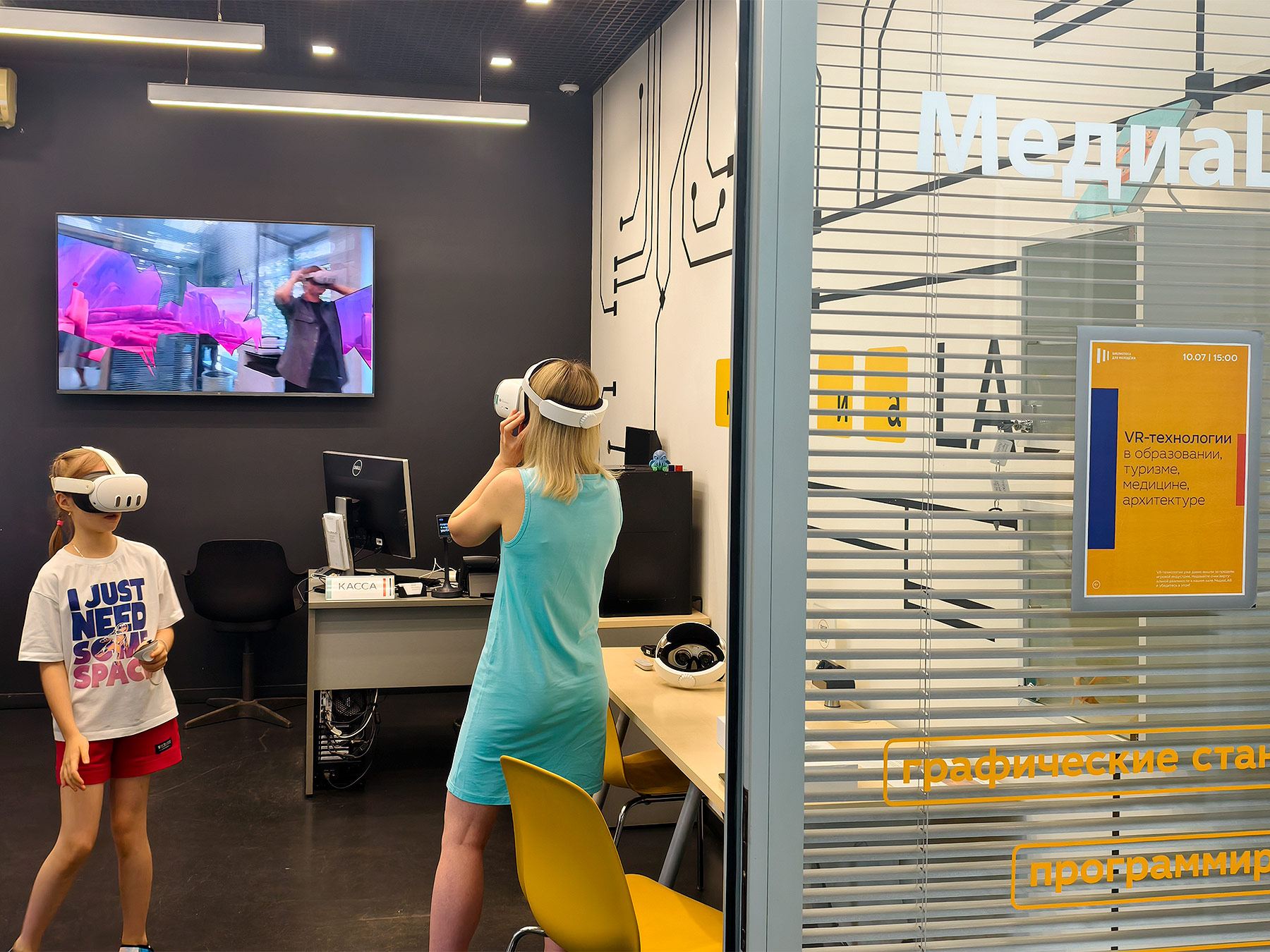По четвергам (17, 24, и 31 июля) в 15:00 у каждого есть возможность погрузиться в мир VR (виртуальной реальности) и AR (дополненной реальности). «VR-технологии уже давно вышли за пределы игровой индустрии, они применяются в образовании, медицине, сфере недвижимости и туризме. Наденьте очки виртуальной реальности и сами убедитесь в этом!», приглашает Софья Иванникова, главный специалист МедиаLAB.