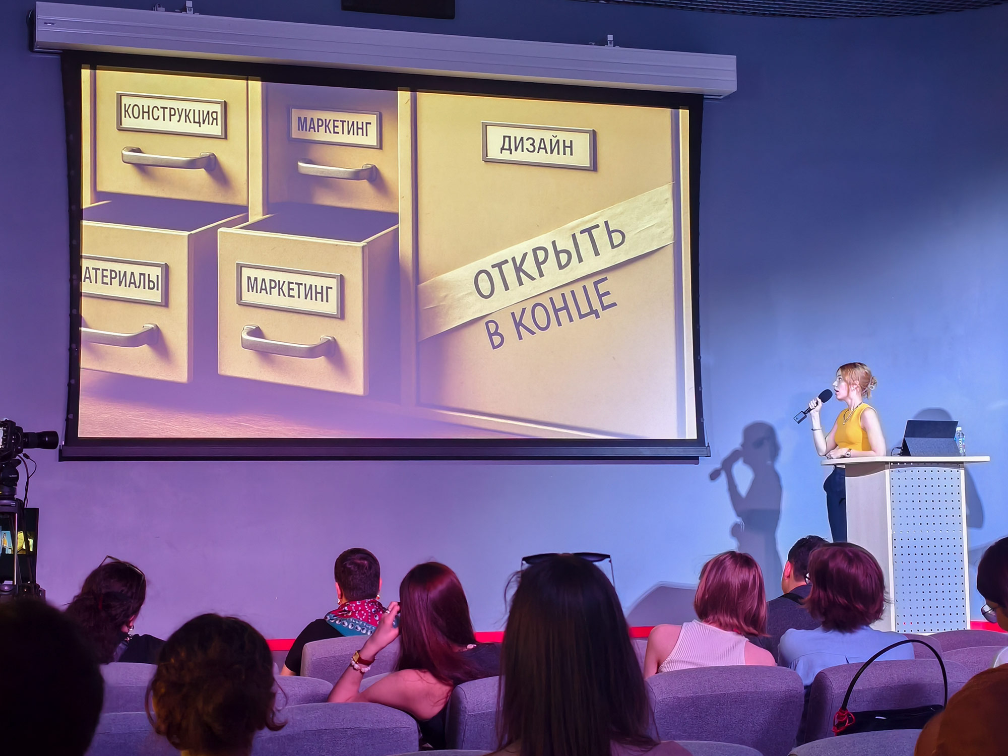 В первый день мероприятия гости услышали историю создания плаката ко Дню России от ведущего дизайнера Руслана Поклонского, погрузились в мир промышленного дизайна с менеджером Натальей Андреевой и познакомились с образовательным проектом «Кампус»: его представили руководитель образовательного направления Ксения Сидорова, арт-директор Владимир Злыднев и тим-лид и коуч PCC ICF Лидия Попова.