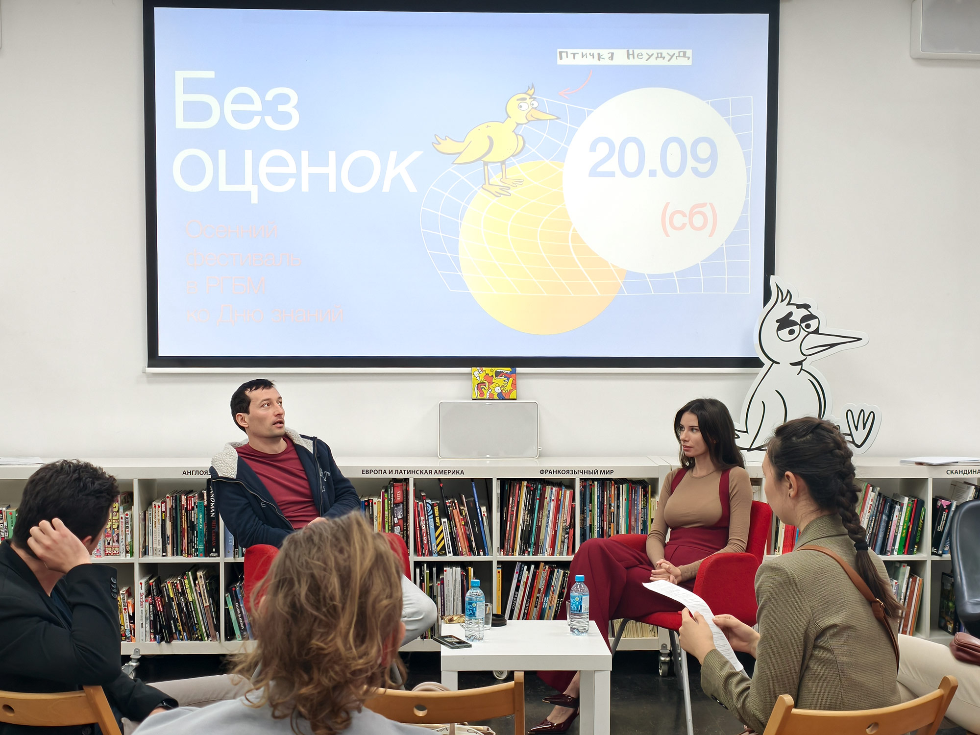 20 сентября в Российской государственной библиотеке для молодёжи состоялся традиционный большой осенний фестиваль. Специальная программа мероприятий ко Дню знаний прошла в этом году под заглавием «Без оценок», а символом стала забавная, но очень начитанная птичка Неудуд, встречавшая гостей в холле библиотеки.