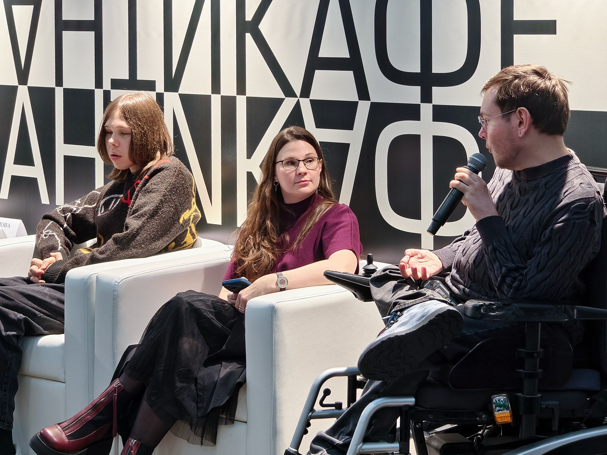 Примечательным событием этого дня также стал паблик-ток «Жить на равных. О чём рассказывают люди с инвалидностью в своих книгах и проектах». Его модератором выступила ведущая инклюзивного литературного клуба «Жёлтая лампа», советник директора РГБМ по развитию социального и инклюзивного направления Юлия Наумова. Одной из тем стало обсуждение роли книг о жизни людей с особым опытом в развенчивании мифов. Общественный деятель, первый человек с инвалидностью, закончивший Школу-студию МХАТ, автор книги «Секс, ***котики и спинальная амиотрофия» Евгений Ляпин отметил: «В процессе написания книги я понял, что практически нет произведений, где сам человек с инвалидностью был бы и писателем, и главным героем. Но инвалидность не определяет меня как личность. Мне хотелось рассказать свою историю, в которой есть обычные человеческие желания и чувства, и, таким образом развеять стереотипы». Яркий пример того, как личная вовлеченность в тему инклюзии через конкретные действия может создать доступную среду и сплотить людей, привёл автор и ведущий подкаста «Книжный разговор» и телеграм-канала «Режим подкаст», ведущий специалист Отдела региональных и специальных проектов Всероссийского центра библиотечного кадрового потенциала РГБМ Фёдор Замыцкий. «В этом году я инициировал запуск тифлокомментирования на спортивных матчах по футболу, хоккею и баскетболу в разных городах России. В результате, моё обращение не только дало возможность незрячим людям стать полноценными болельщиками, но и помирило две школы комментирования и объединило целое профессиональное сообщество», подчеркнул он. Поддержал беседу автор телеграм-канала о музыке «Тимохич», студент кафедры онтологии и теории познания философского факультета МГУ, ведущий инклюзивных встреч с обсуждением творчества музыкантов, консультант по доступности российских музеев и арт-пространств Тимофей Горшков. Он отметил, что культурные проекты способны дать людям чувство единства и равенства: «Мне кажется, что нам удаётся сближаться на общей почве в данном случае, в любви к музыке. Люди просто начинают забывать о твоих особенностях и воспринимают тебя как фаната определённой музыкальной группы. Получается, что искусство стирает границы и становится объединяющим фактором для всех людей без исключения».