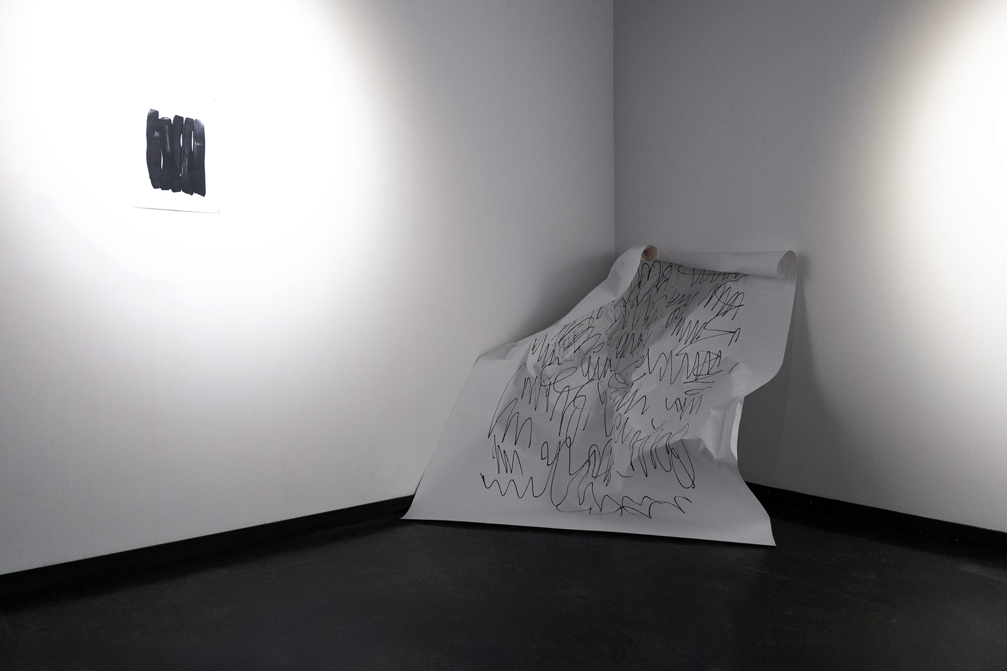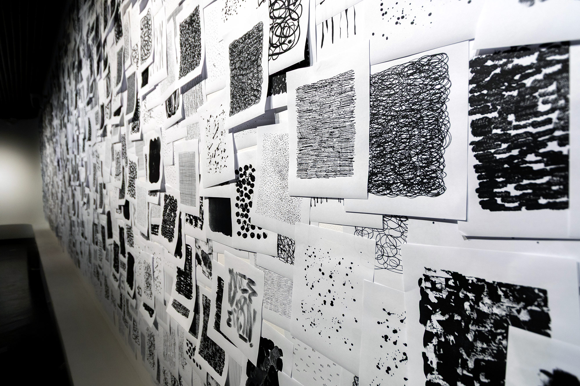 Абстрактные композиции на страницах балансируют между письмом и рисунком. Линия выглядит как запись, но не подчиняется языку: там, где мы ждём слова, остаётся след жеста, ритм, паузы, эмоциональная температура книги. Исторически книга один из самых дисциплинированных объектов культуры, с её началом и концом, нумерацией и строгим порядком страниц. В этом проекте абстракция вторгается в привычную форму и мягко подрывает её правила: последовательность сохраняется, но вместо готовой доктрины нам предлагается опыт колебаний и непредсказуемых переходов между чёрным и белым.