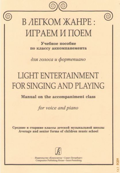 В легком жанре: играем и поем: учебное пособие по классу аккомпанемента. Для голоса и фортепиано. средние и старшие классы ДМШ [редактор И. Вульфович] составители: Л. В. Коробейникова, Е. В. Сирина — [200-]