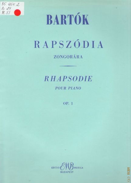 Bartok B., Rapszodia: zongorara: Op. 1 — 1967