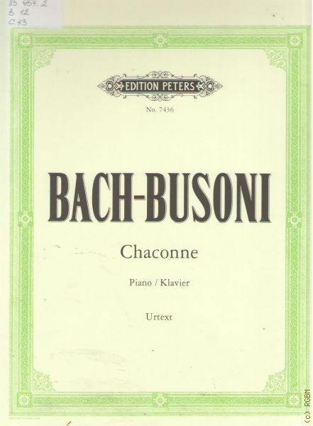 Bach J.S., Chaconne: D moll: with Variations from Partita No. 2 for Unaccompanied Violin: BWV 1004. Urtext. Arranged for concert performance on the pianoforte by Ferruccio Busoni — 1997 (Edition Peters)