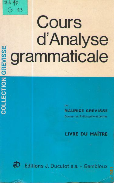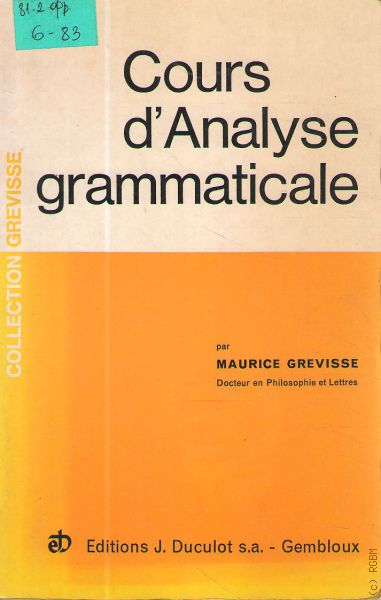 Аннотация: Une grammaire du francais d'aujourd'hui, claire, pratique, concrete, systematique, integrant les acquis de la linguistique moderne, attentive aux niveaux de langue, citant aussi bien Celine que le Code civil, sans negliger l'oral et notamment les faits de prononciation.Une grammaire permettant a chacun d'enrichir et de completer ses connaissances du francais, en meme temps qu'elle initie au fonctionnement de la langue.