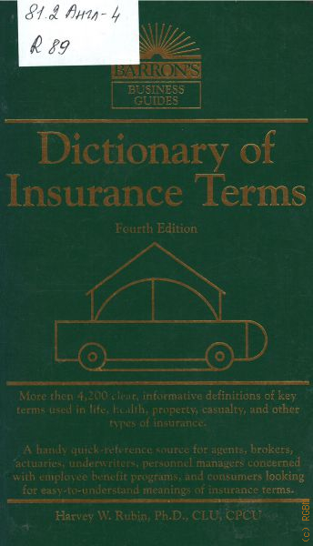 Аннотация: More then 4200 clear, informative definitions of key terms used in life, health, property, casualty, and other types of insurance. A handy quick reference sourse for agents, brokers, actuaries, underwriters, personnel managers concerned with employee benefit programs, and consumers looking for easy-to-understand meanings of insurance terms.