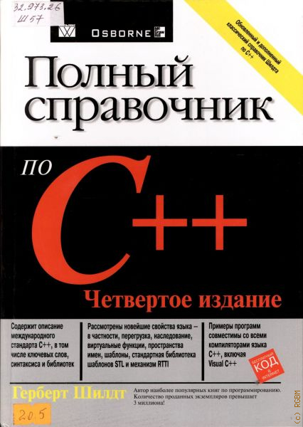 Аннотация: В этой книге описаны все основные средства языка C++ — от элементарных понятий до супервозможностей. После рассмотрения основ программирования на C++ (переменных, операторов, инструкций управления, функций, классов и объектов) читатель освоит такие более сложные средства языка, как механизм обработки исключительных ситуаций (исключений), шаблоны, пространства имен, динамическая идентификация типов, стандартная библиотека шаблонов (STL), а также познакомится с расширенным набором ключевых слов, используемым в .NET-программировании. Автор справочника — общепризнанный авторитет в области программирования на языках С и C++, Java и С# — включил в текст своей книги и советы программистам, которые позволят повысить эффективность их работы.