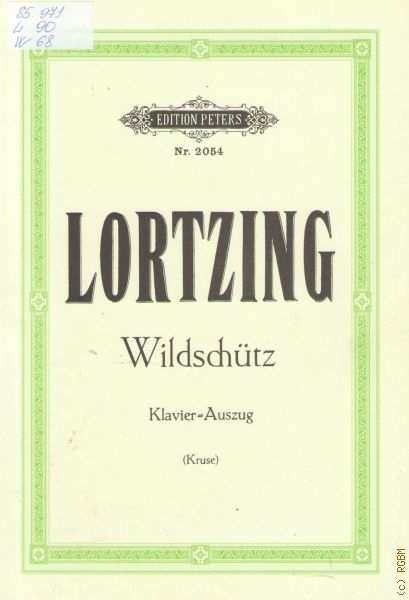Lortzing A., Der Wildschutz oder die stimme der natur. Komische oper in drei akten. Klavier=Auszug. Herausgegeben von Georg Richard Kruse — Б.г.