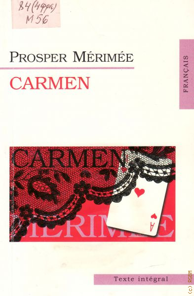 : Carmen est une nouvelle de Prosper Mrime crite en 1845 et publie en 1847, dont a t tir lopra homonyme, musique de Georges Bizet, livret de Henri Meilhac et Ludovic Halvy (1875). armen traite du sujet de la libert, de l'amour obsessionnel et de la jalousie meurtrire. La nouvelle met principalement en scne les personnages de Carmen et de Don Jos, dont l'amour passionn pour la belle bohmienne est sens unique, ce qui a pour rsultat le meurtre de Carmen par Don Jos.