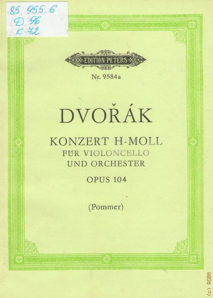 Dvorak A. Konzert: op. 104: H moll fur Violoncello und Orchester. Herausgegeben M. Pommer