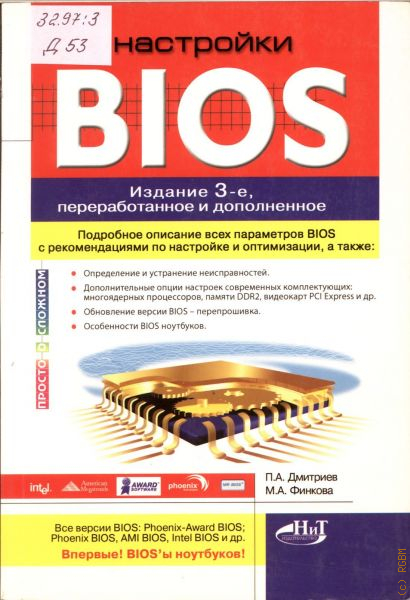 BIOS (basic input/output system) — базовая система ввода-вывода — это встроенное в компьютер программное обеспечение, которое доступно ПК без обращения к жесткому диску. На персональном компьютере BIOS содержит код, необходимый для управления клавиатурой, видеокартой, дисками, портами и другими устройствами. С помощью этой книги вы узнаете как определить какой BIOS «прошит» на материнской плате, для чего нужна перепрошивка новых версий BIOS, как восстановить настройки BIOS по умолчанию. Для широкого круга пользователей персонального компьютера.